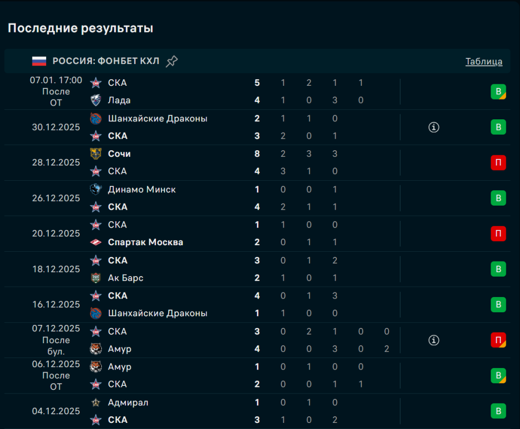 Последние игры СКА Санкт-Петербург