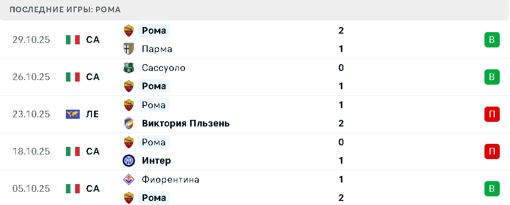 - Рома пропустила в 5 из 6 последних матчей в разных турнирах.