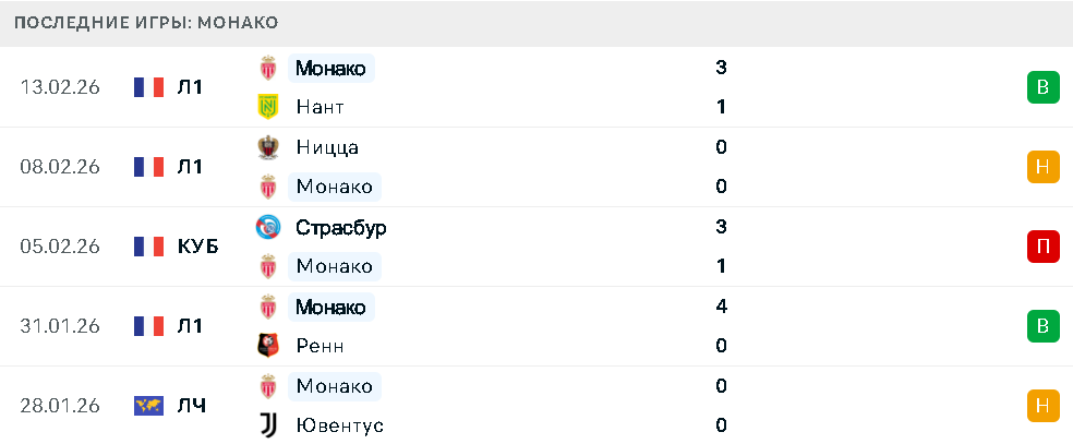 - В 5 последних матчах «Монако» забивает в среднем 1,60 гола за игру.