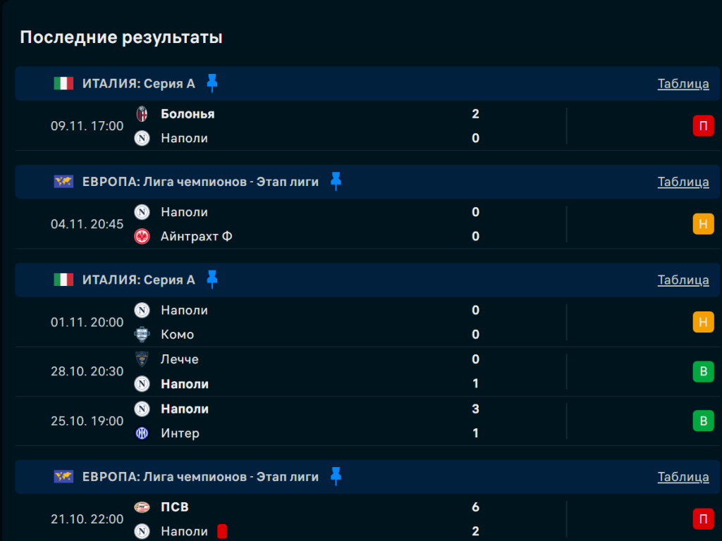 Последние игры команды Наполи