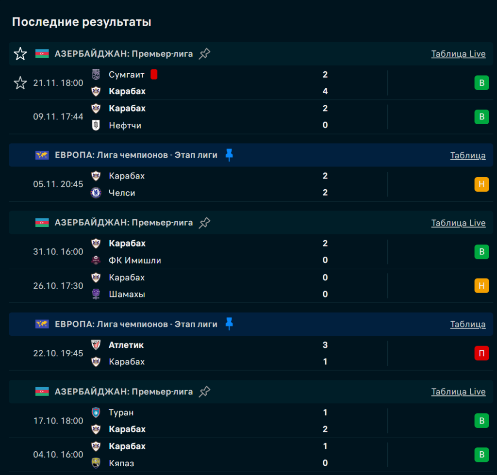 Последние игры команды Карабах