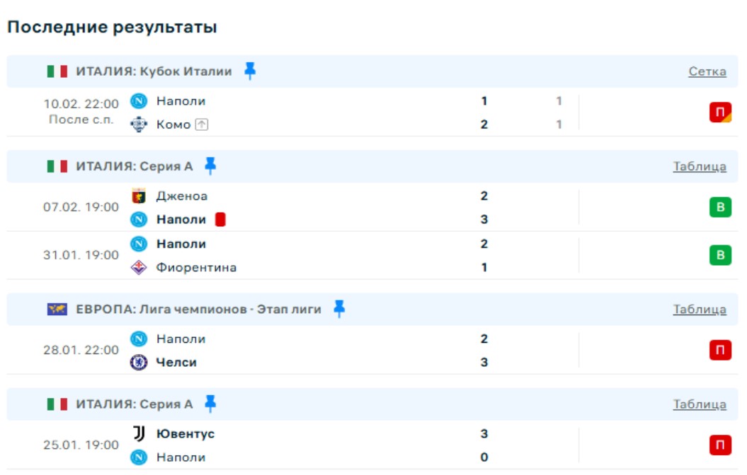 Последние игры Наполи