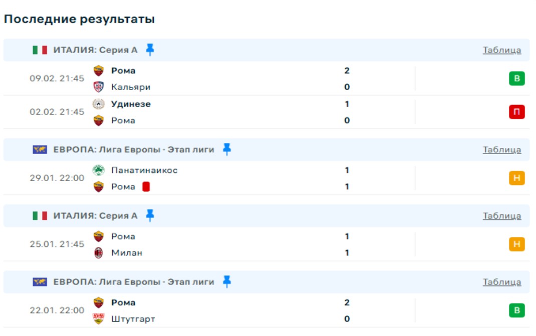 Последние игры Ромы