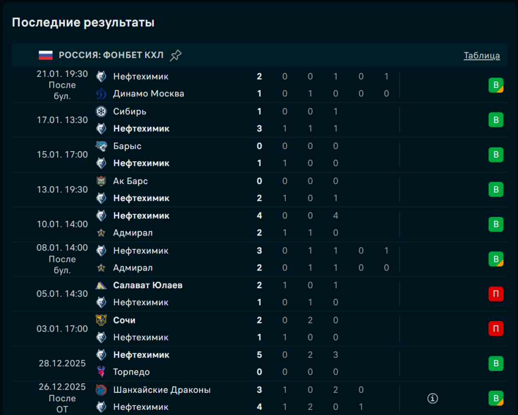 Последние игры Нефтехимик Нижнекамск
