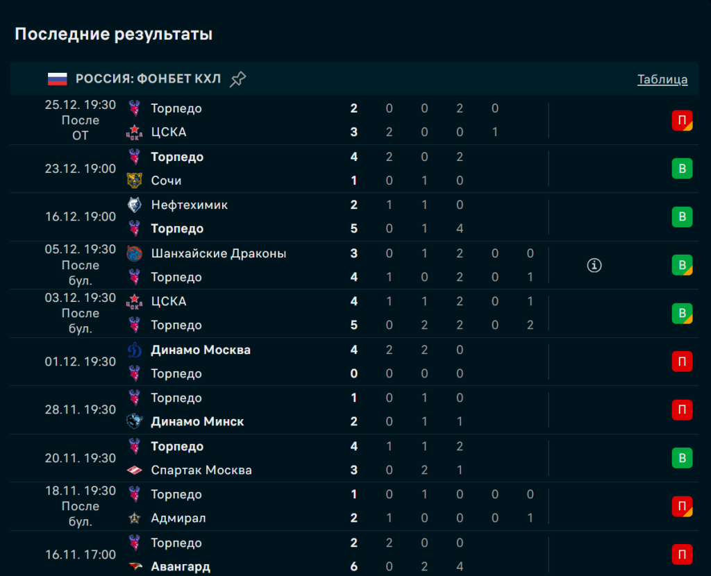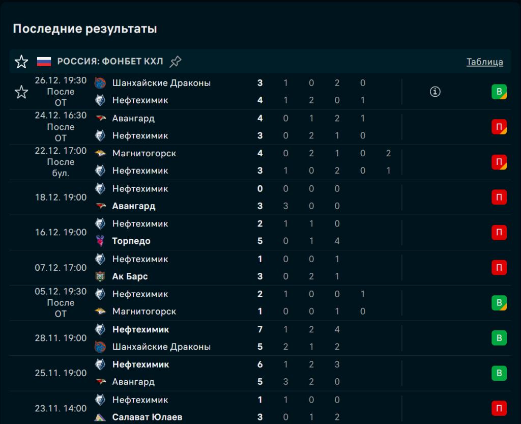 «Торпедо» демонстрирует стабильную игру на выезде, особенно против команд из нижней половины таблицы. «Нефтехимик», несмотря на прерывание серии поражений, остаётся уязвимым: слабая реализация, уставший вратарь и низкая дисциплина в обороне. Учитывая, что нижегородцы выиграли в Нижнекамске 16 декабря (5:2) и исторически сильны на выезде против «волков», наиболее надёжный сценарий — не-поражение гостей в основное время.