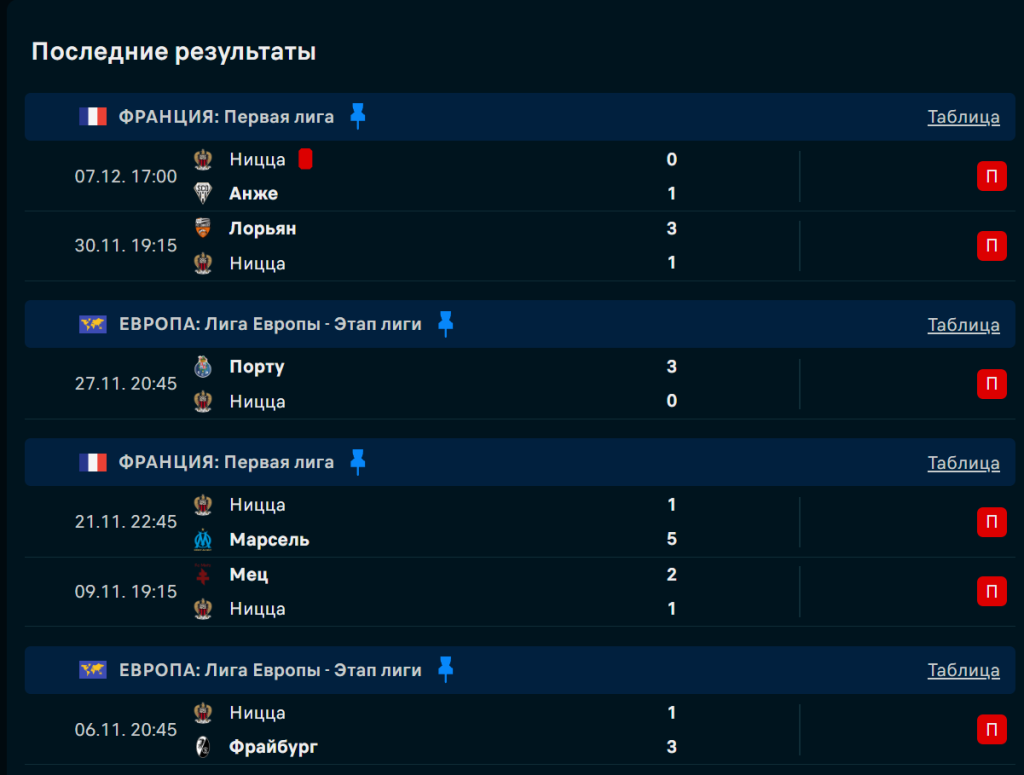 «Ницца» переживает глубокий кризис: 7 поражений подряд во всех турнирах, конфликт с болельщиками, атака на базу, заявления тренера Франка Эза о желании уйти. Команда не выигрывает в ЛЕ уже 17 матчей подряд (10 поражений, 7 ничьих) — худший показатель среди французских клубов. В 5 матчах текущего этапа — 12 пропущенных, 4 забитых. В атаке играют Нгене и Янссон, но без уверенности и инициативы.