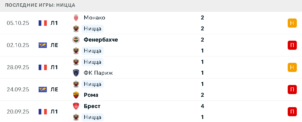 Последние игры Ниццы