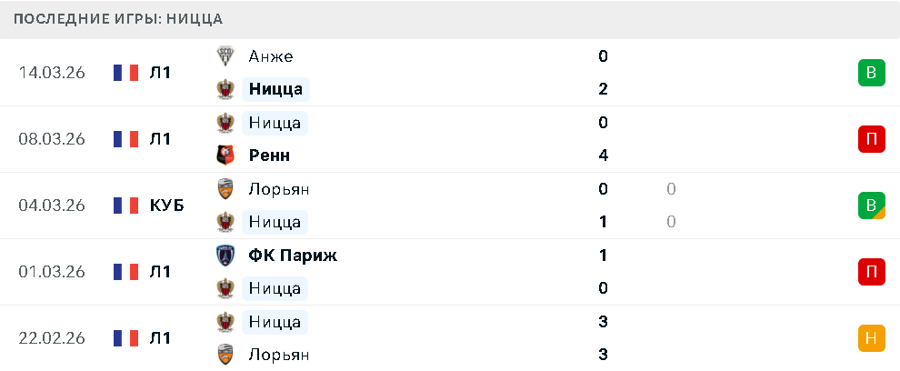 В пяти последних матчах во всех турнирах «Ницца» одержала лишь одну победу — над «Анже». До этого команда дважды сыграла вничью с «Лорьяном», а также уступила «Парижу» и «Ренну». Такая серия подтверждает нестабильность коллектива, который чередует удачные отрезки с провальными.