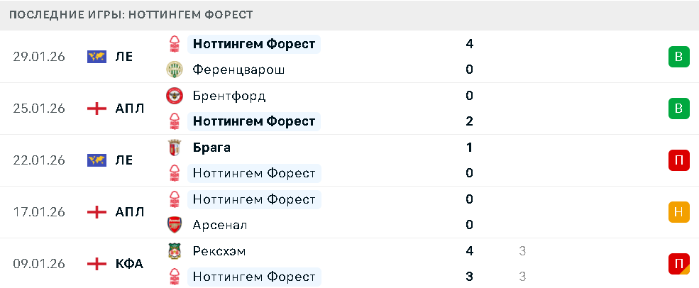Последние игры Ноттингем Форест