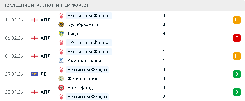 На домашней арене ситуация не лучше: в 13 матчах на «Сити Граунд» команда одержала 3 победы, 4 раза сыграла вничью и потерпела 6 поражений. Более того, в пяти последних играх АПЛ дома «Ноттингем Форест» не добивался победы, что добавляет тревоги болельщикам.
