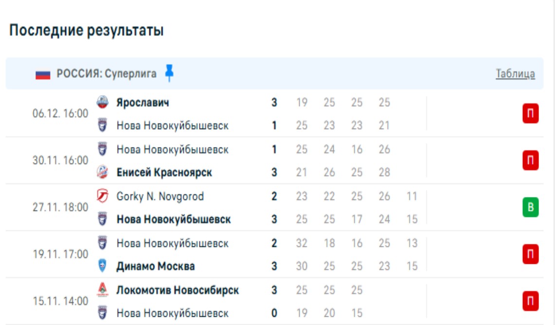 Волейболисты из Новокуйбышевска выиграли 1 из последних 6 встреч. С первой половины ноября продолжается неудачная серия Новы, на протяжении которой ей удалось победить только Горький. В Нижнем Новгороде команда Олега Микановича была сильнее в 5 партиях.