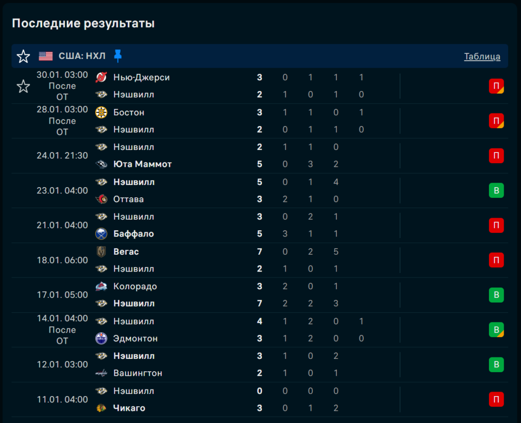 Последние игры Нэшвилл Предаторз