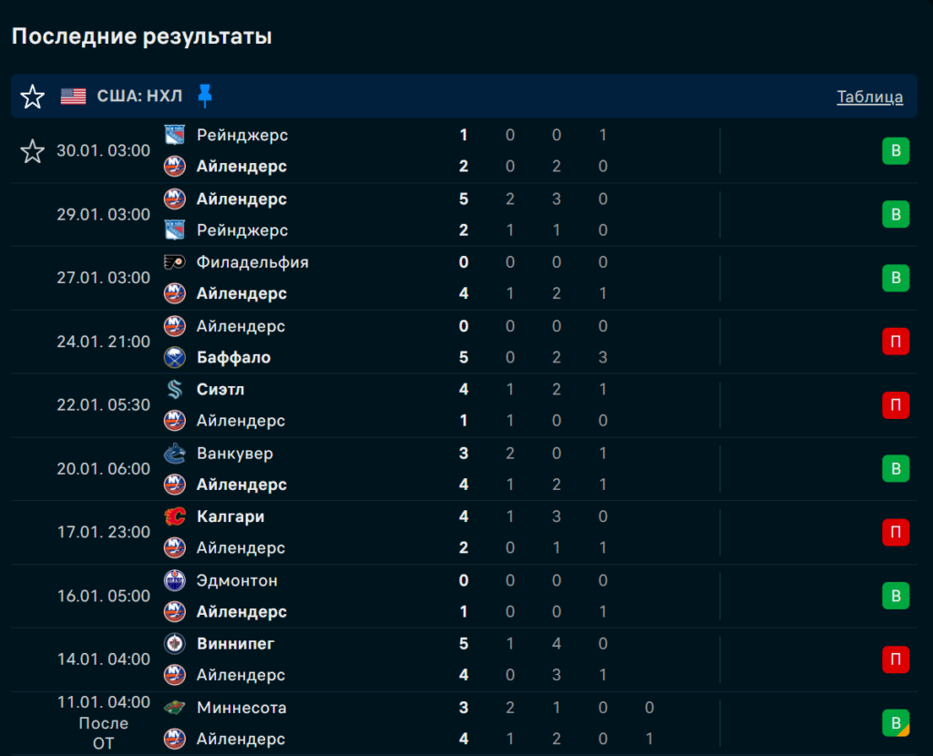Домашний 4 : 0 с «Филадельфией» подкрепили дерби против «Рейнджерс» — 5 : 2 на UBS и 2 : 1 на выезде. Между этими победами «Айлендерс» обыграли «Нэшвилл» 3 : 2. Команда чисто играет в своей зоне, выигрывает подбор и лучше управляет концовками, что особенно видно дома.