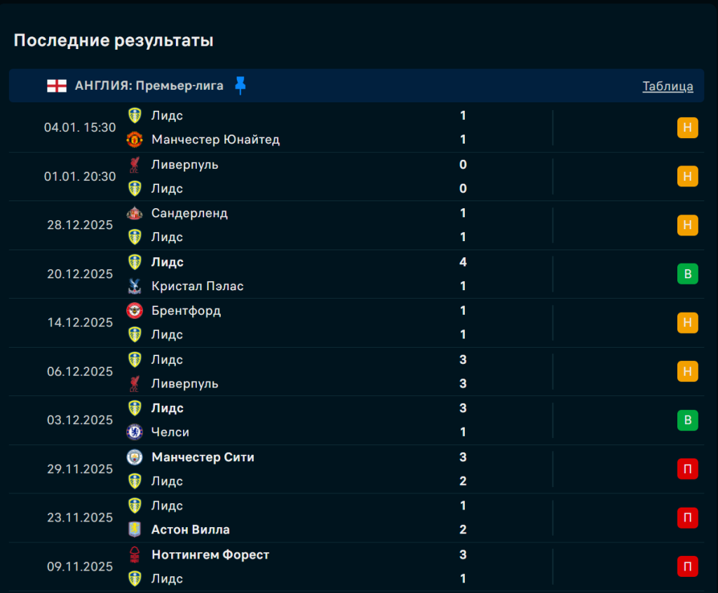 Последние игры Лидс