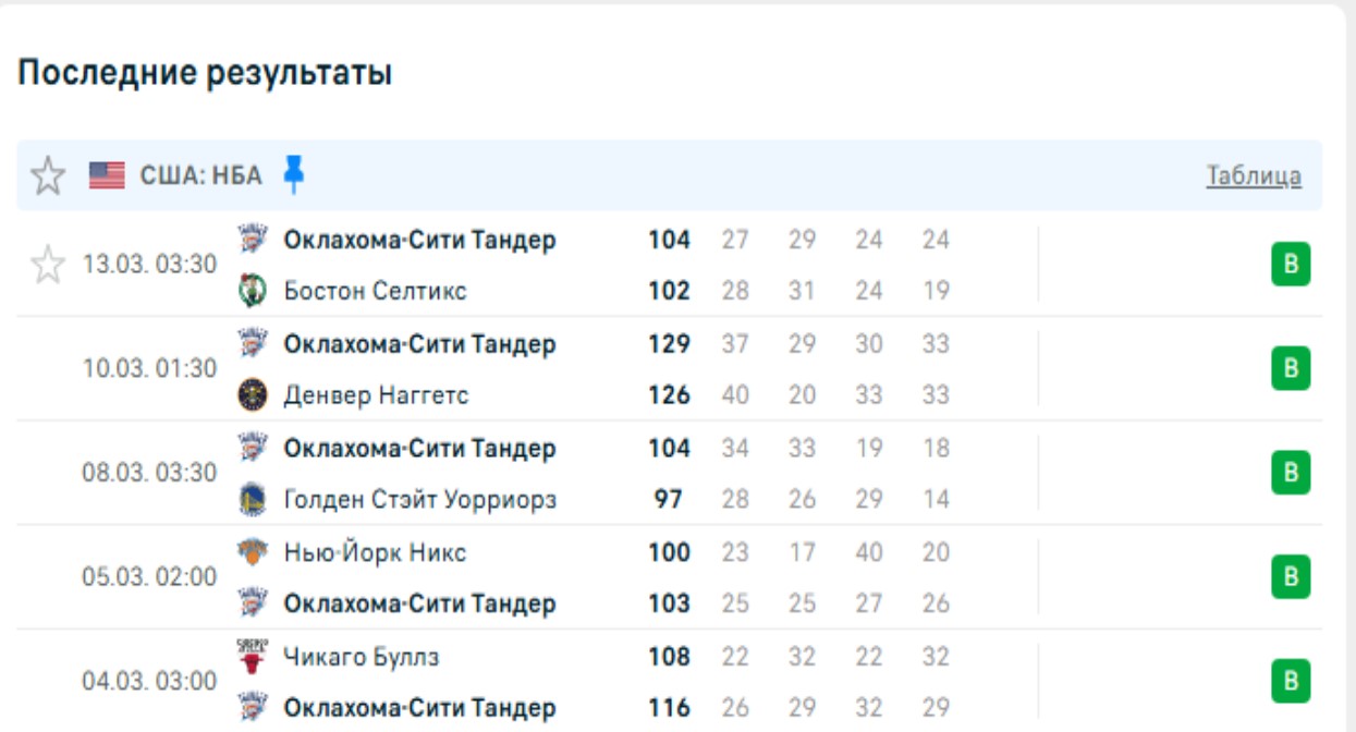 Последние игры Оклахома-Сити Тандер