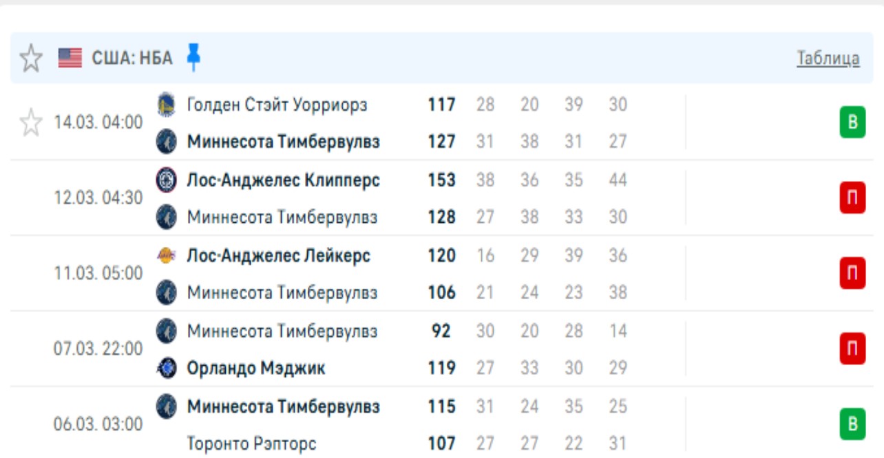 Последние игры Миннесота Тимбервулвз