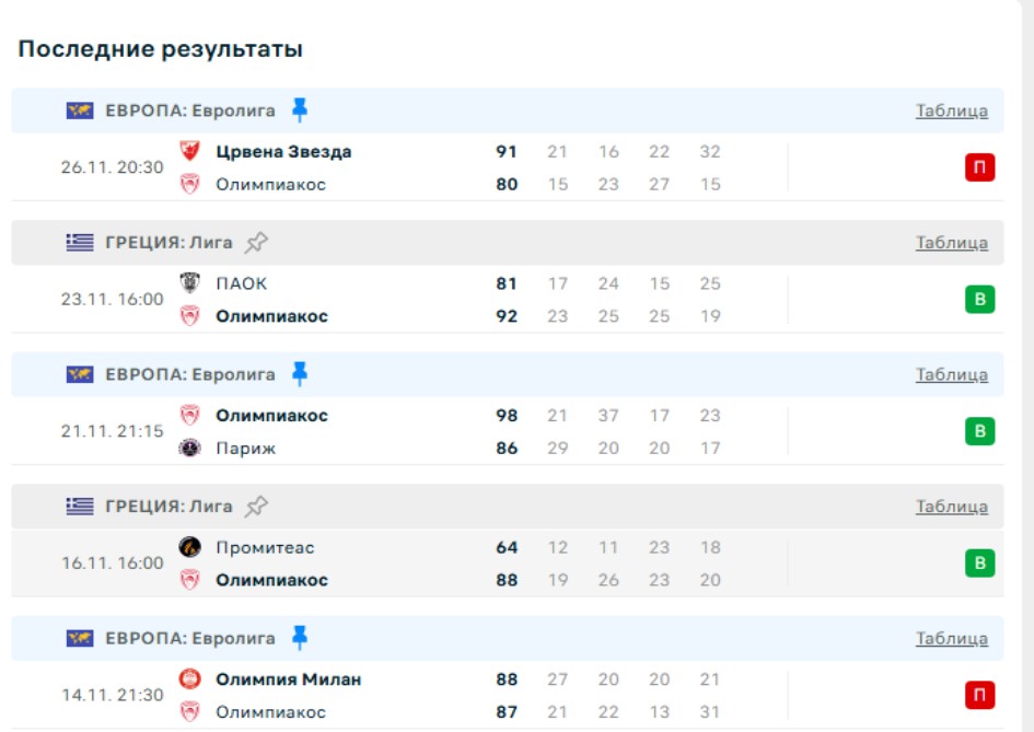 В четверг, 4 декабря, Олимпиакос на домашнем паркете примет турецкий Фенербахче. Обе команды входят в топ-8 текущего розыгрыша и ведут борьбу за прямые путевки в 1/4 финала. Турецкий клуб — действующий победитель Евролиги, который давно забыл, что такое поражения. Греки выше в турнирной таблице, но только по дополнительным показателям. Сумеет ли Олимпиакос прервать впечатляющую беспроигрышную серию Фенербахче?