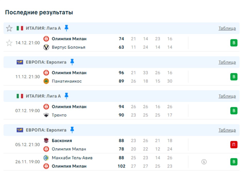 В чемпионате Италии Олимпия занимает шестое место, проиграв уже 4 раза со старта сезона в 11 турах. В минувшее воскресенье подопечные Джузеппе Поэта дома были сильнее Виртус Болоньи 74:63.