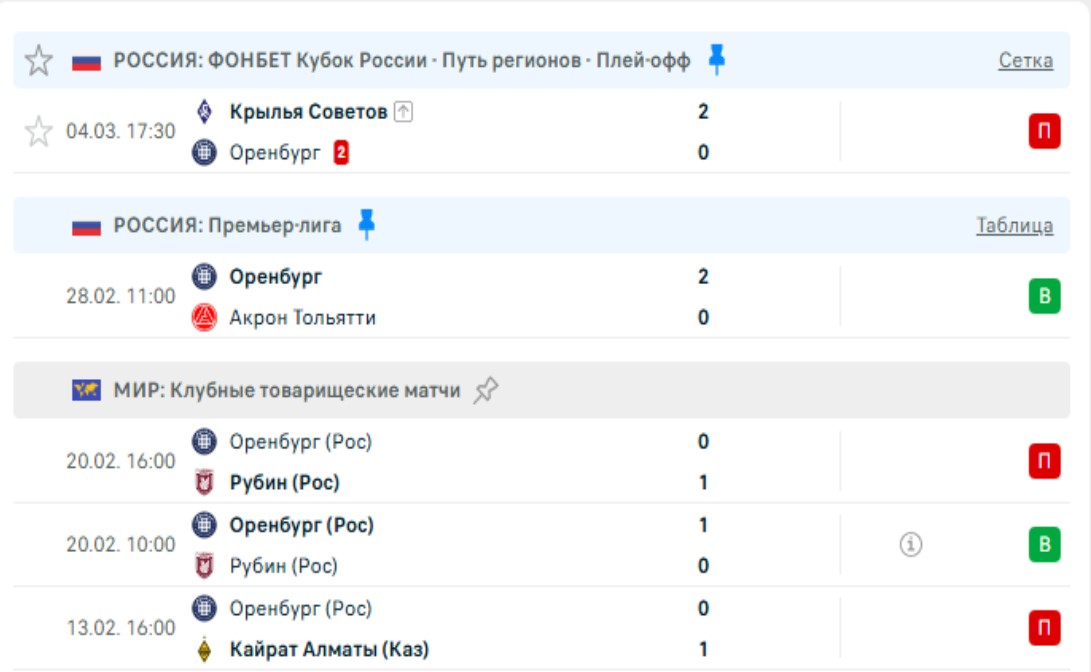 Последние игры Оренбурга