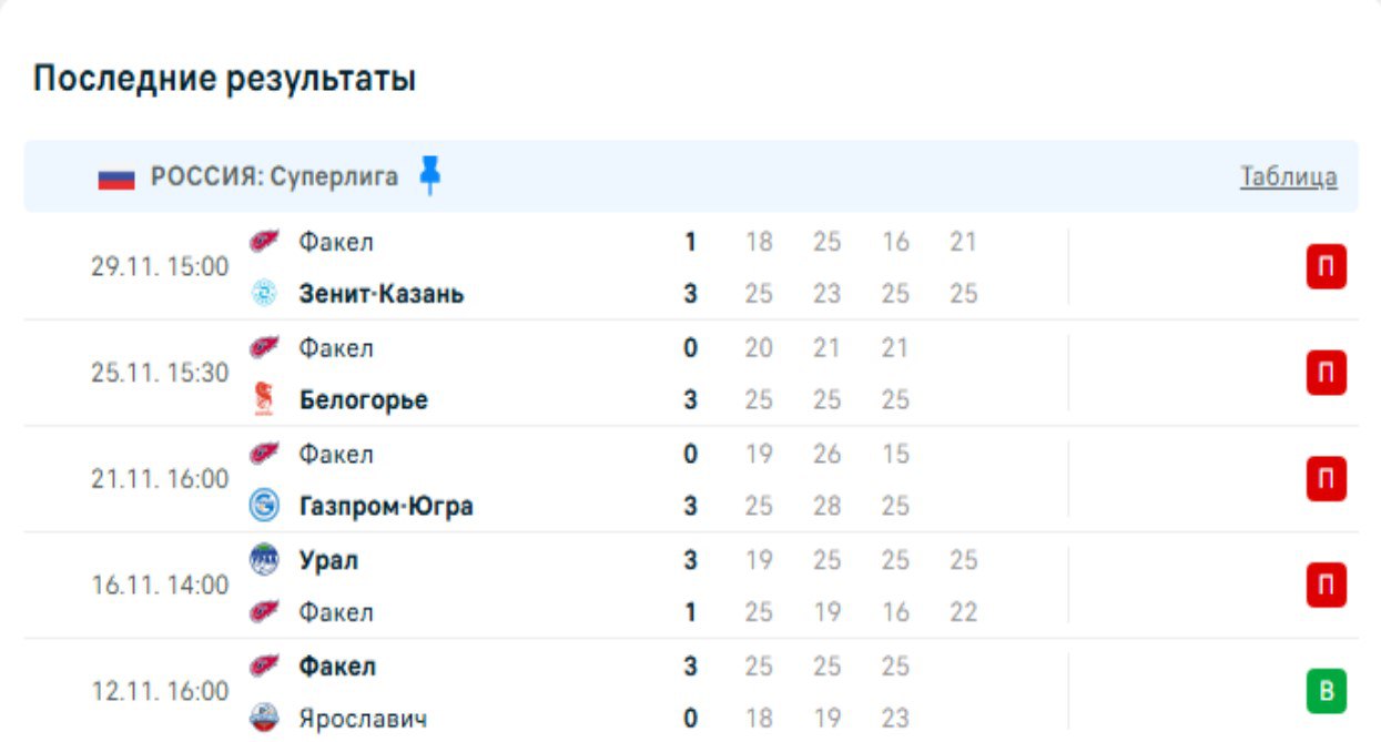 За 4 последние проигранные встречи Факел сумел забрать только 2 партии — по одной в играх с Динамо-Урал и Зенит-Казань. В прошлом туре сургутчане принимали на своей площадке волейболистов из Татарстана, которых обыграли во втором сете 25:23. В остальных партиях навязать борьбу одному из лидеров чемпионата не получилось.