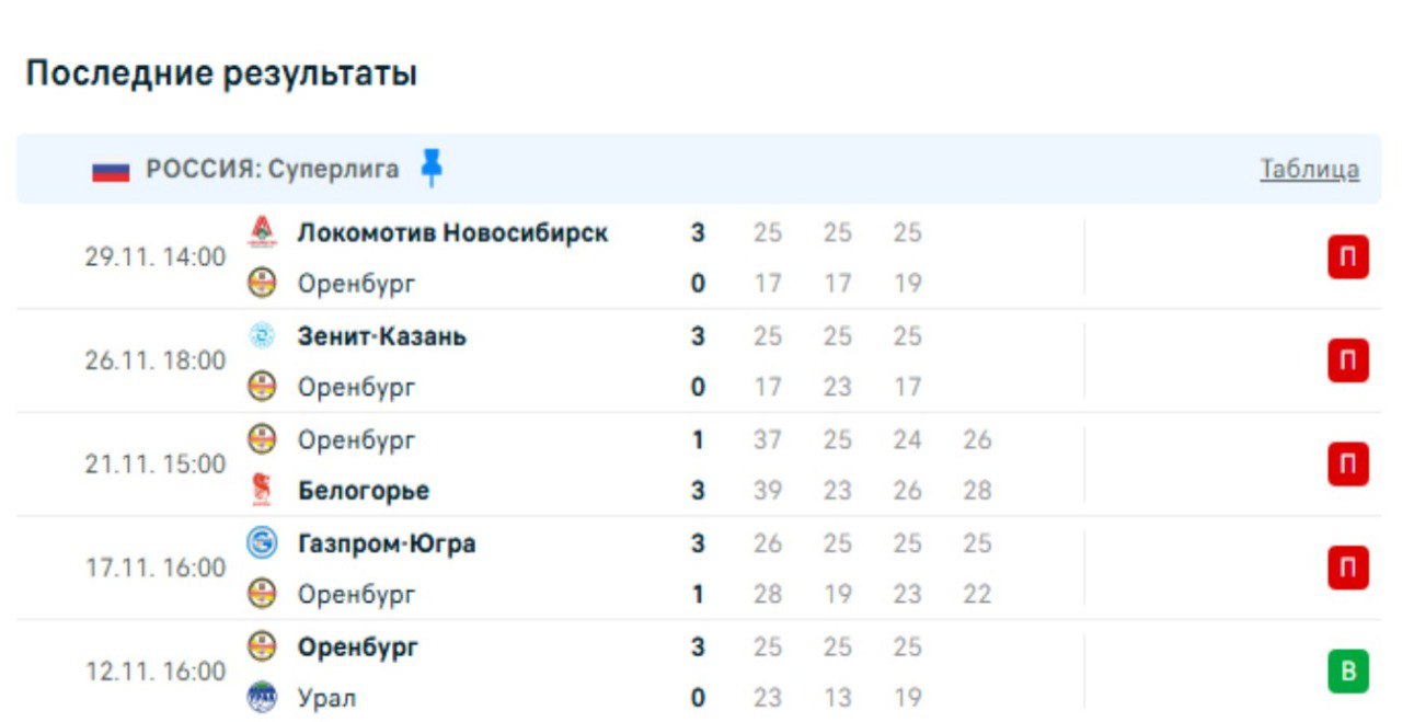 У оренбуржцев 3 победы в 10 матчах, которые были добыты до середины ноября. Сейчас у дружины Антона Вольвича продолжается серия из 4 поражений подряд. Команда набрала 9 очков и занимает 12 место в Суперлиге.