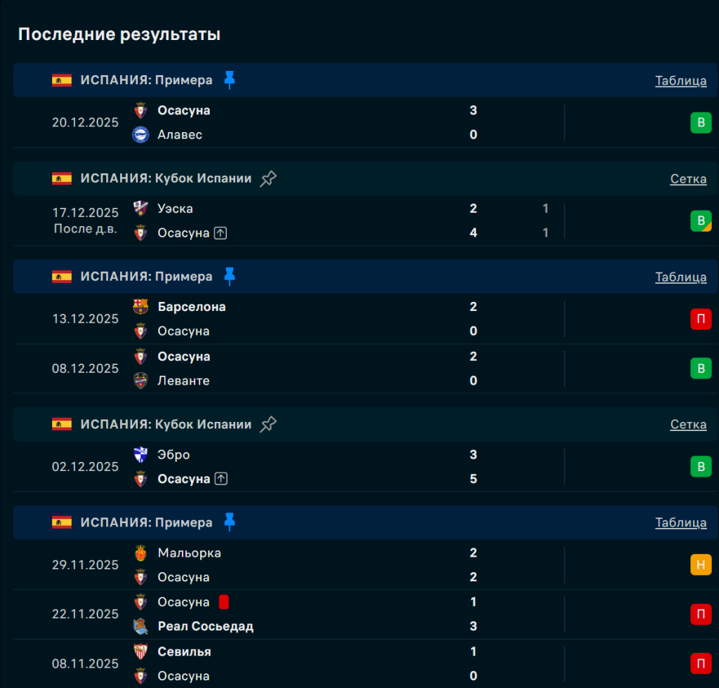 Последние игры Осасуна
