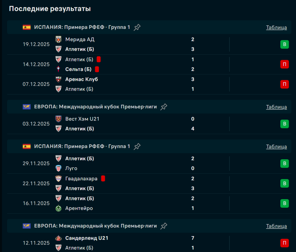 Последние игры Атлетик Бильбао