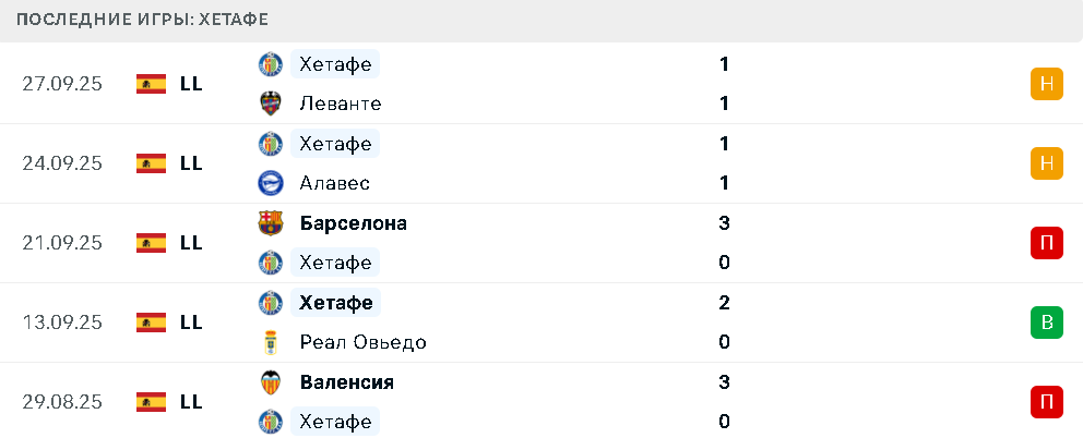 Последние игры Хетафе