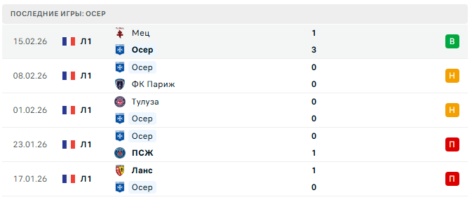 15 февраля «Осер» выиграл у «Меца» 3:1 на выезде — первая победа за два месяца, и при этом команда контролировала счёт почти весь матч.