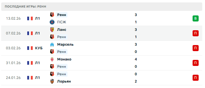 13 февраля «Ренн» на домашнем поле обыграл ПСЖ 3:1 — неожиданный результат после серии из пяти поражений подряд.