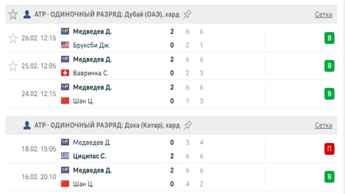 Последние игры Медведева