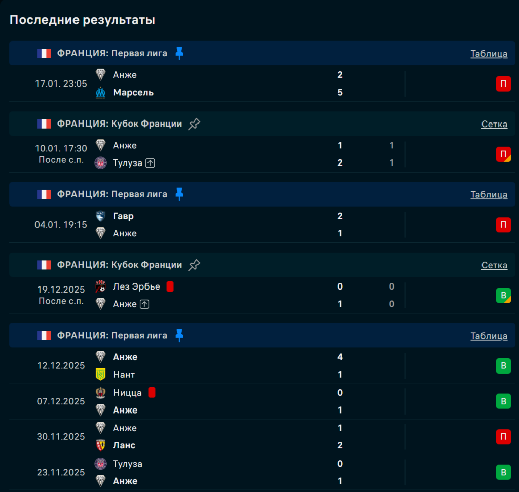 Победа над «Нантом» (2:1) и триумф над ПСЖ в Кубке стали поворотным моментом. Даже поражение от «Тулузы» (0:3) в декабре теперь выглядит как временный спад. Команда Гилли научилась создавать моменты даже без владения — ключевой инструмент против неплотной обороны «Анже».