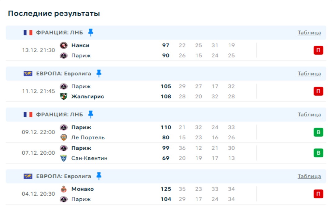 В чемпионате Франции Париж на втором месте, пытаясь не дать оторваться лидирующему Монако. В минувшую субботу столичные баскетболисты проиграли на выезде середняку Нанси 90:97.