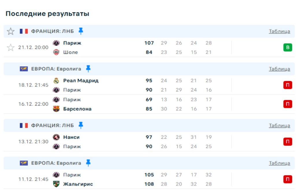 В Евролиге парижане занимают 18 срочку, у команды всего 5 побед с начала сезона, столько же у Баварии, меньше только у АСВЕЛа (4). Дома Париж и турецкий Анадолу Эфес побеждали реже всех в турнире — только по 3 раза.