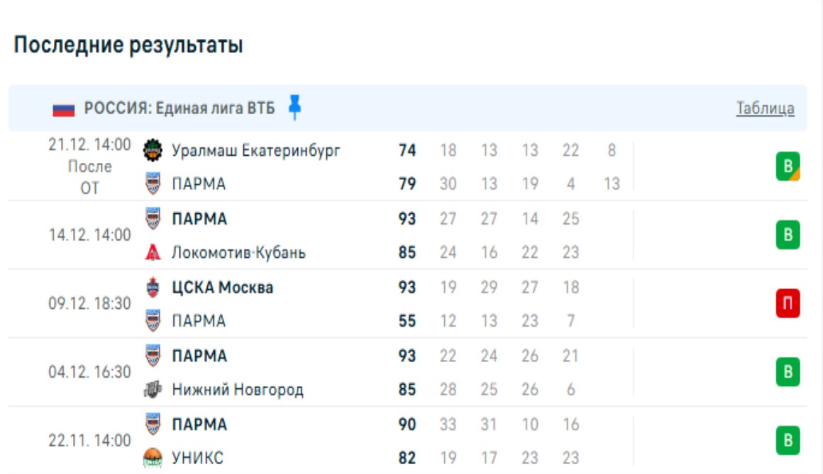 За предыдущие 6 поединков Парма уступила только на выезде ЦСКА. Армейцы были на голову сильнее соперника и на классы выиграли 93:55.