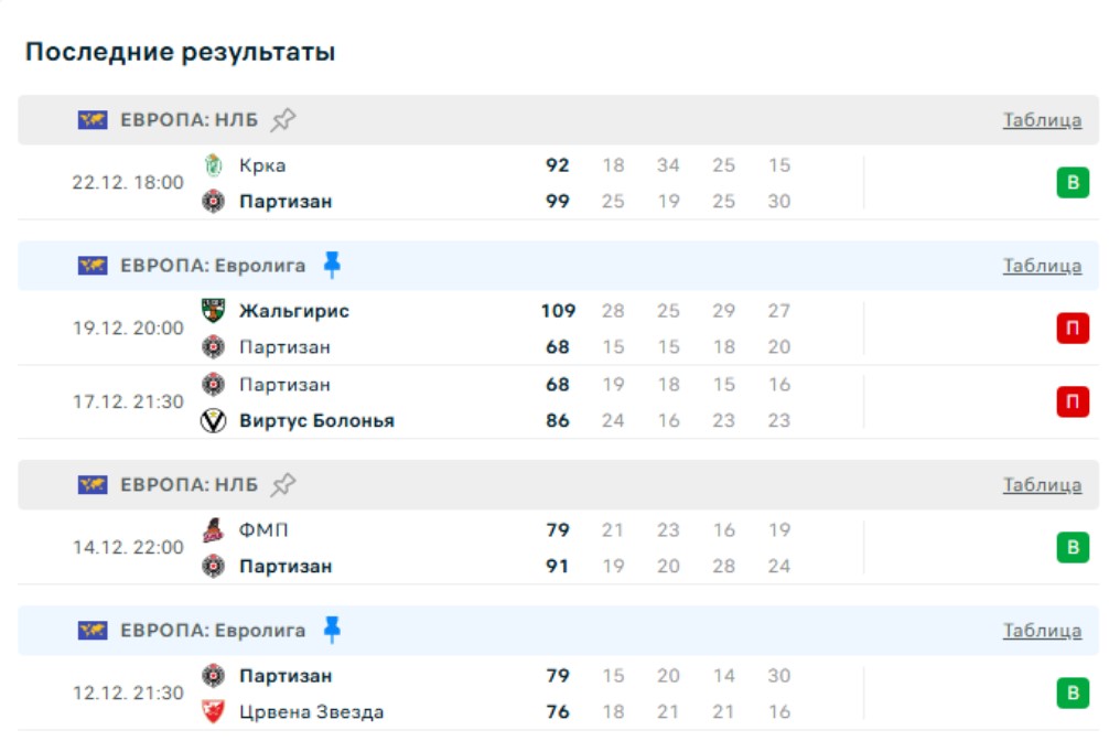 В параллельно проходящей Адриатической лиге ситуация лучше. В понедельник Партизан обыграл на выезде словенскую Крка 99:92. Сейчас подопечные Пеньярроя на третьей позиции в группе А, уступая Дубаю и Клуж-Напоке.