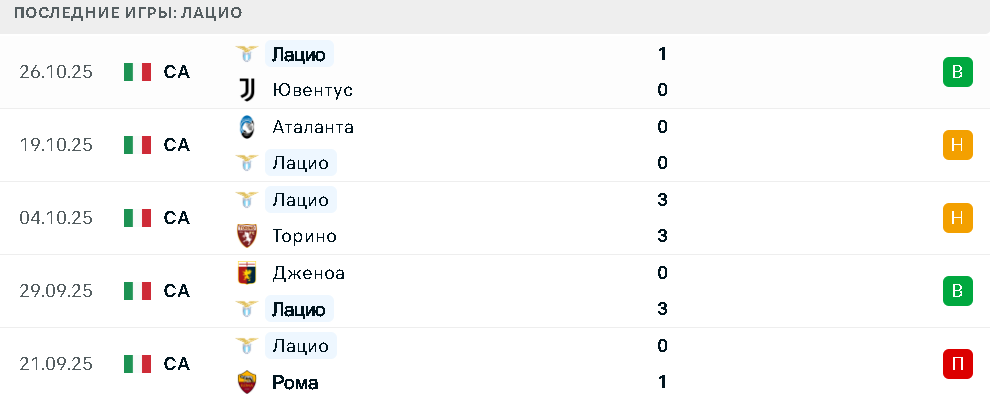 - Лацио отстоял на ноль в пяти из восьми матчей текущего сезона.