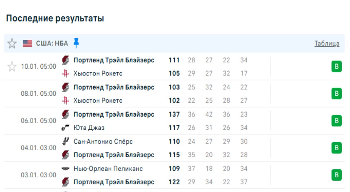 Последние игры Портленд Блэйзерс