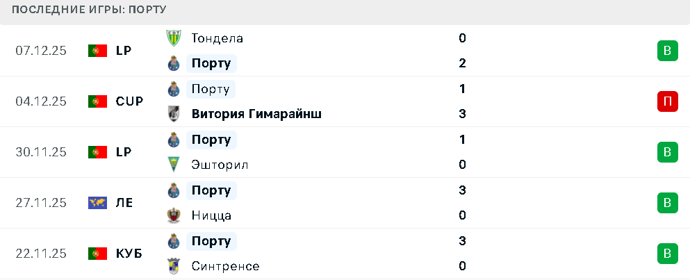 Поражение в Кубке Португалии от «Витории» стало для «Порту» единственным в пяти последних матчах. В остальных случаях команда всухую обыграла «Синтренсе», «Ниццу», «Эшторил» и «Тонделу».