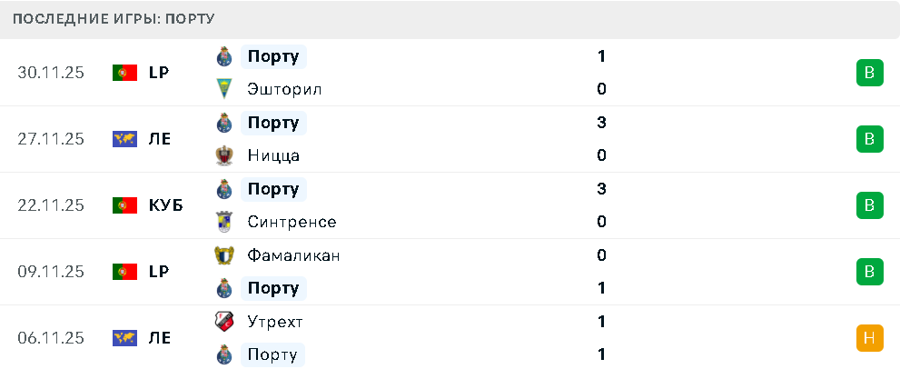 Последние игры Порту