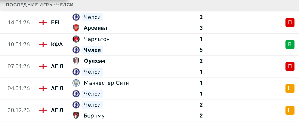 Последние игры Челси