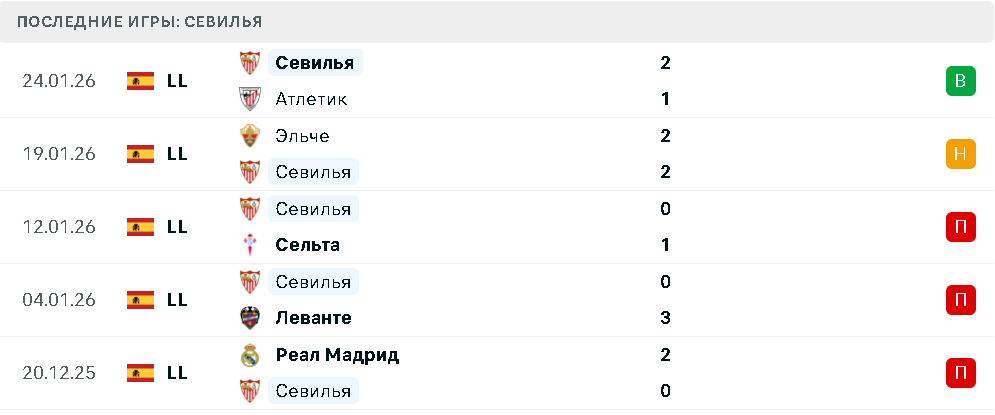 До ничьей с Эльче и победы над Атлетиком Севилья потерпела три сухих поражения подряд — от мадридского Реала, Леванте и Сельты. Эти результаты негативно сказались на положении команды в турнирной таблице Ла Лиги.
