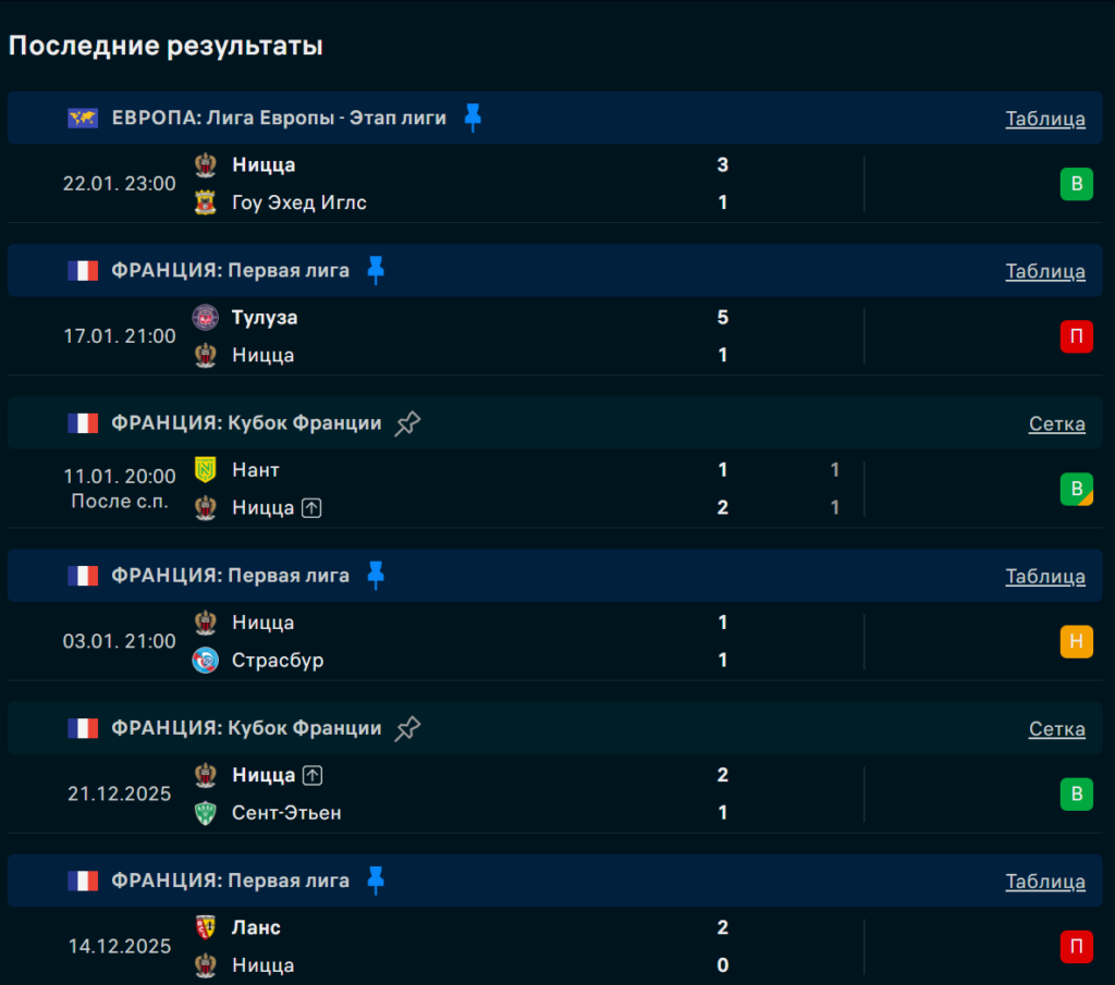 Катастрофа. Семь поражений в восьми матчах, включая 1:5 от «Тулузы». Единственны победы — над «Сент-Этьеном» (2:1) и «Гоу Эхед Иглс» (3:1). Даже в Лиге Европы успехи — против слабых соперников. На выезде — полный провал: 1 гол за последние пять гостевых матчей в Лиге 1. Без Моффи атака превращается в имитацию.