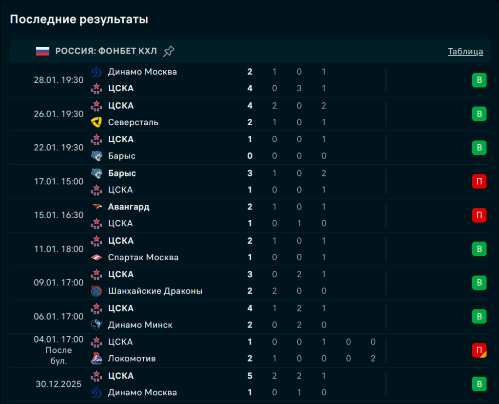 Последние игры ЦСКА Москва