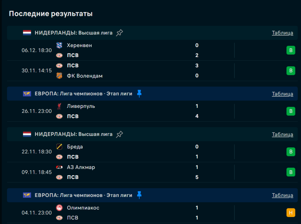 - ПСВ выигрывает 5 матчей подряд во всех турнирах