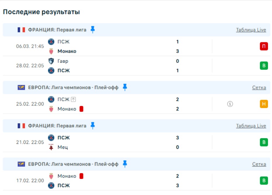Последние игры ПСЖ