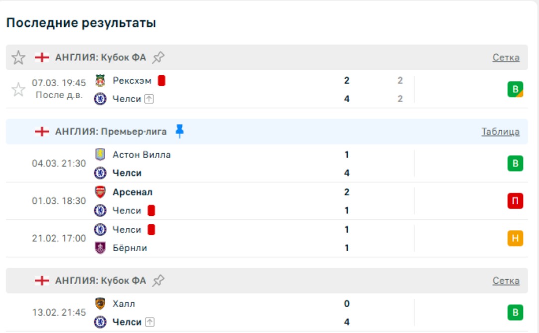 Последние игры Челси