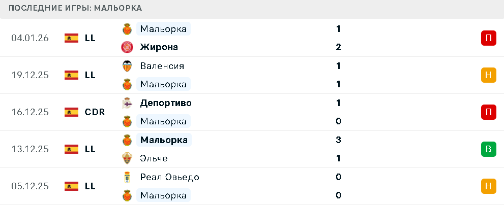 Последние игры Мальорки