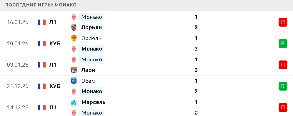 Последние игры Монако