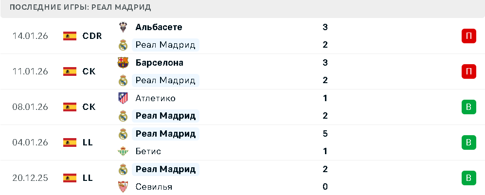 Последние игры Реала